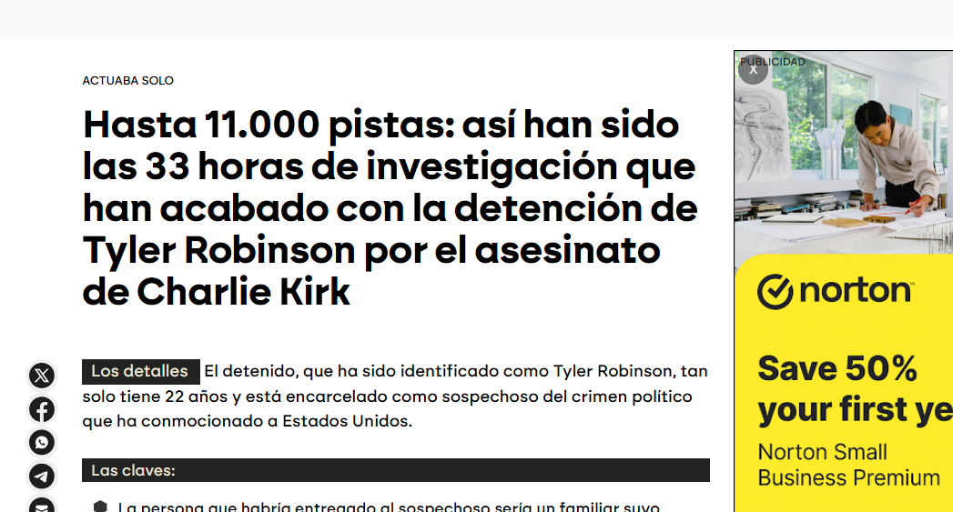 🤖 There is no record of any Anastasia J. Casey (https://www.clarin.com/estados-unidos/the-shooting-of-charlie-kirk-misterioso-libro-publicado-amazon-anticipo-tragedia-utah_0_j2mGPgN3W5.html), the supposed name of the author, although everything suggests it is an AI-generated book.