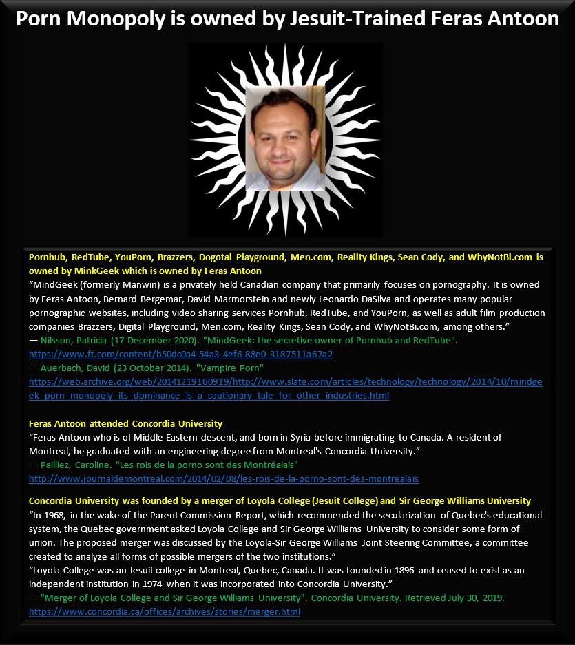 Porn is now controlled by the Jesuits (Feras Antoon) and beans (Solomon Friedman) to zombie the teenagers, make them idiots and submissive.