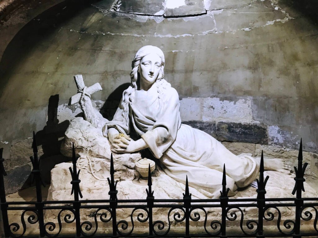 Her remains were unearthed in the 13th century a few km away, in Saint-Maximin, at the exact place where the basilica now stands. They are kept in a reliquary inside the crypt, where thousands of pilgrims from all over the world come and pray.