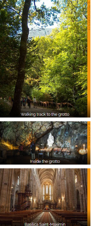 Both places, the grotto and the basilica where the relics of Saint Mary Magdalene lie, are part of the Sanctuary. A hiking trail, walked by kings such as Saint Louis and Louis 14th, link the two holy places.La Sainte-Baume is a limestone mountain ridge boasting many caves and fossils. Archeological digs found traces of prehistoric human life, including tools made out of flint stones. The most famous grotto is the cave Mary Magdalene chose to spend her final years, in contemplation and prayer when she escaped persecution in Palestine. Pilgrims can get there by car or on foot. It takes several hours to climb the track, ending with 150 steps to reach the cave